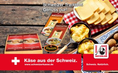 Traditionell wird der Raclette geschmolzen und mit Pellkartoffeln, Essiggurken, Silberzwiebeln, Mixed Pickles, Pfeffer und Paprikagewürz...